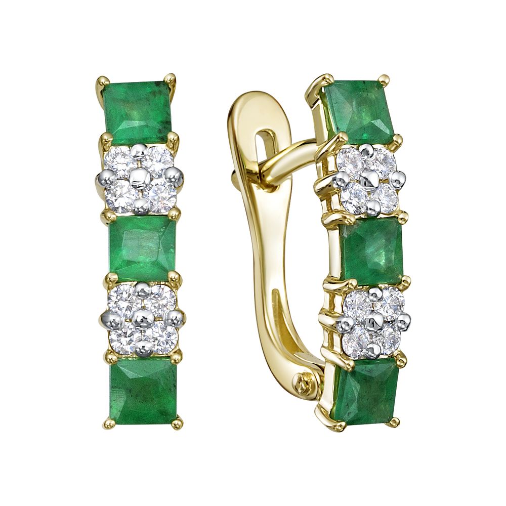 Серьги из желтого золота 585 пробы с бриллиантами и изумрудами